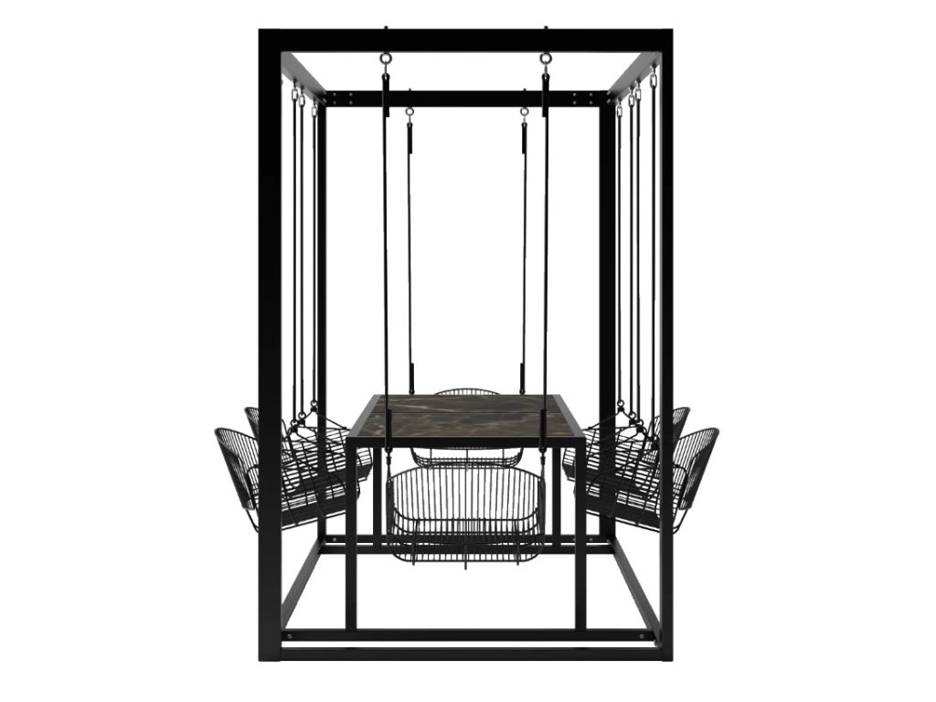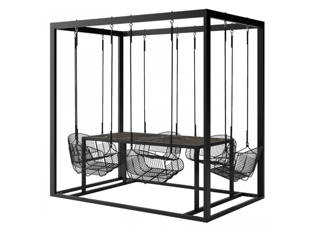 Objavte jedinečnú kombináciu jedinečnosti a funkcionality s naším záhradným setom pre 6 osôb. Hybridná súprava spojuje stôl a hojdačku, ponúkajúc tak nezabudnuteľné miesto na oddych. Tento exkluzívny záhradný nábytok pre 6 osôb disponuje kovovými sedákmi s opierkami, ktoré zabezpečujú pohodlné posedenie vonku. Je ideálny pre tých, ktorí si vážia moderné a inovatívne riešenia a chcú svoju záhradu alebo terasu obohatiť o unikátny prvok. Či už preferujete spoločné jedlo alebo relaxačnú hojdačku, výber je váš!