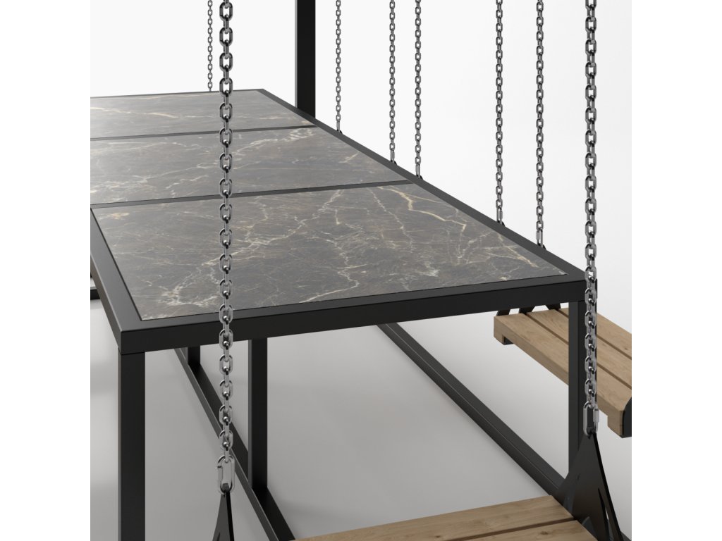 Táto inovatívna záhradná súprava spojuje funkciu hojdačky a stola, čo ju robí ideálnou pre ôsmych ľudí, ktorí si chcú užiť relaxáciu pri stolovaní vonku. Jej pevná konštrukcia a moderný dizajn ju robia nielen funkčným, ale aj atraktívnym doplnkom pre každú záhradu či terasu.