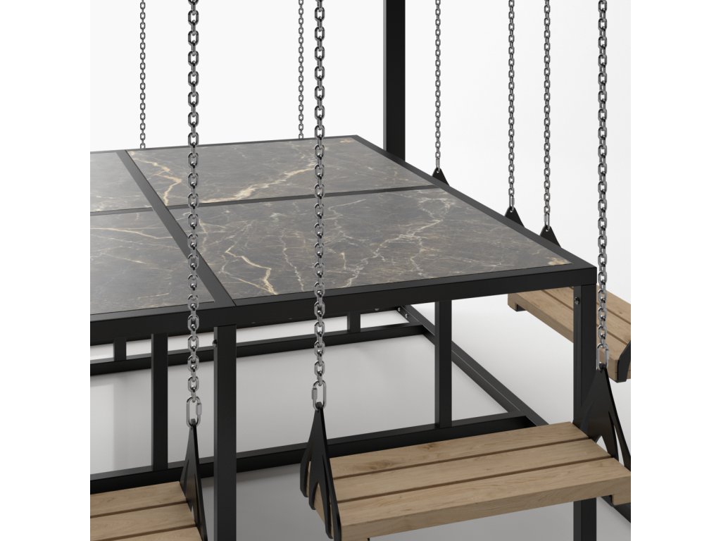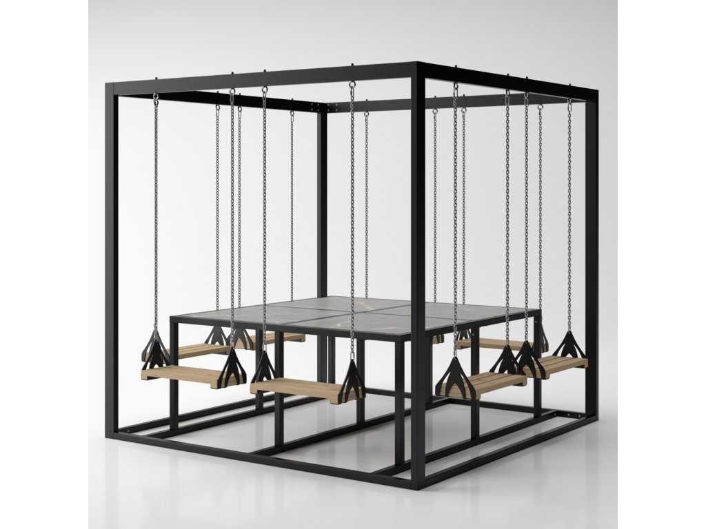 Táto inovatívna záhradná súprava spojuje funkciu hojdačky a stola, čo ju robí ideálnou pre ôsmych ľudí, ktorí si chcú užiť relaxáciu pri stolovaní vonku. Jej pevná konštrukcia a moderný dizajn ju robia nielen funkčným, ale aj atraktívnym doplnkom pre každú záhradu či terasu.